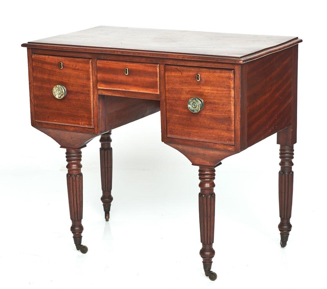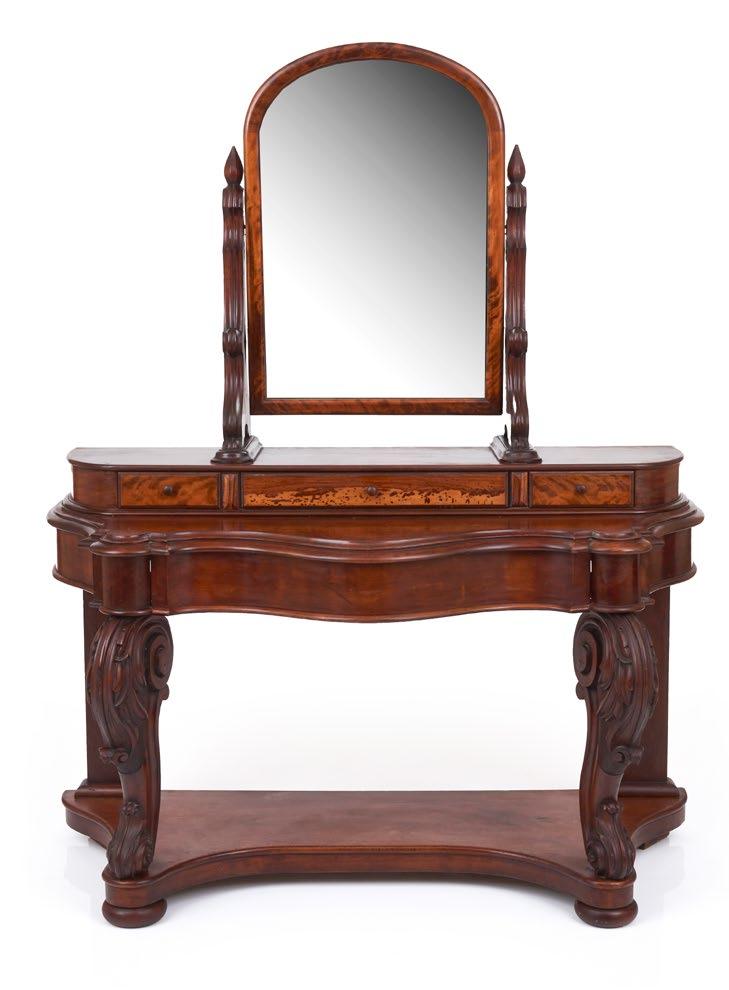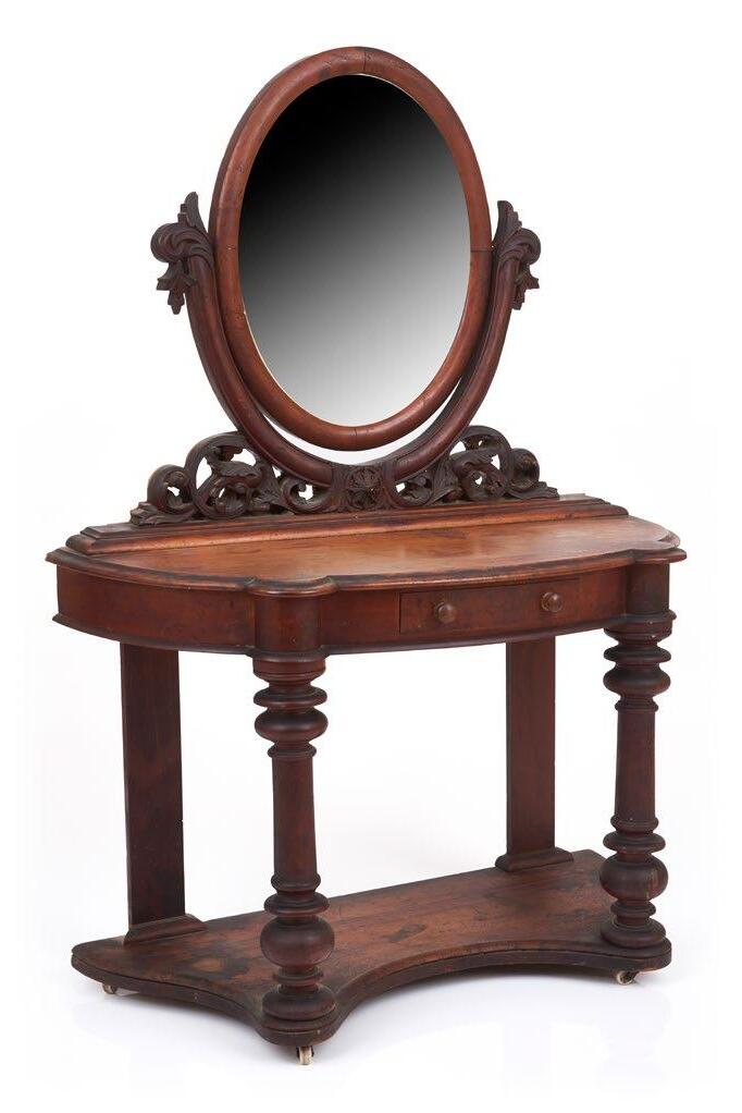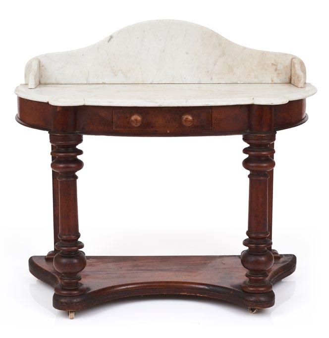 A cedar matching set of wash-stand and dressing table of small proportions, Australian, circa 1880 the wash stand with marble top and the dressing table with carved support swivel mirror dressing table: 110cm wide, 50cm deep, 154cm high washstand: 110cm wide, 50cm deep, 98cm high $1,500–2,000