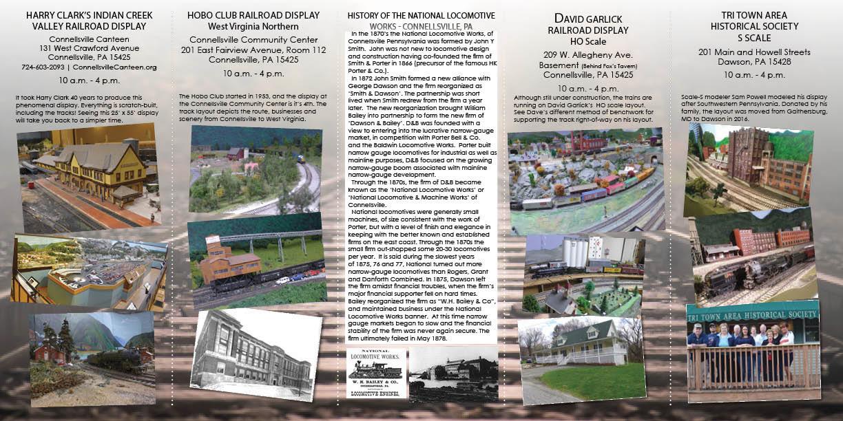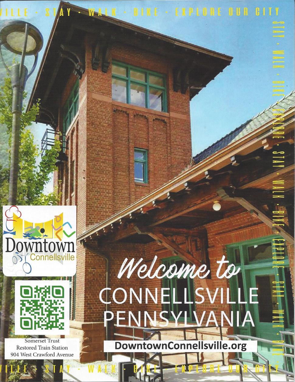 Downtown Connellsville produces the Welcome to Connellsville walking map which is placed in all overnight lodging facilities in Connellsville. This document has a map inside and lets visitors know how far participating restaurants and shops are to walk from the Hotel.