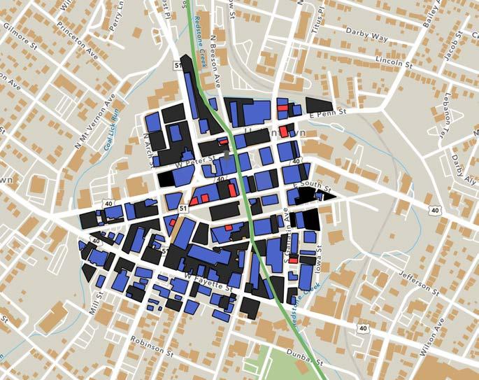 Based on our analysis of current land usage in Uniontown’s Historic Downtown (bounded loosely by Penn, Gallatin, Fayette, and Morgantown Streets), there are plenty of opportunities for business development. Especially because approximately 40-50% of land in the downtown area is surface parking lots.