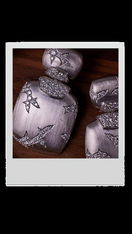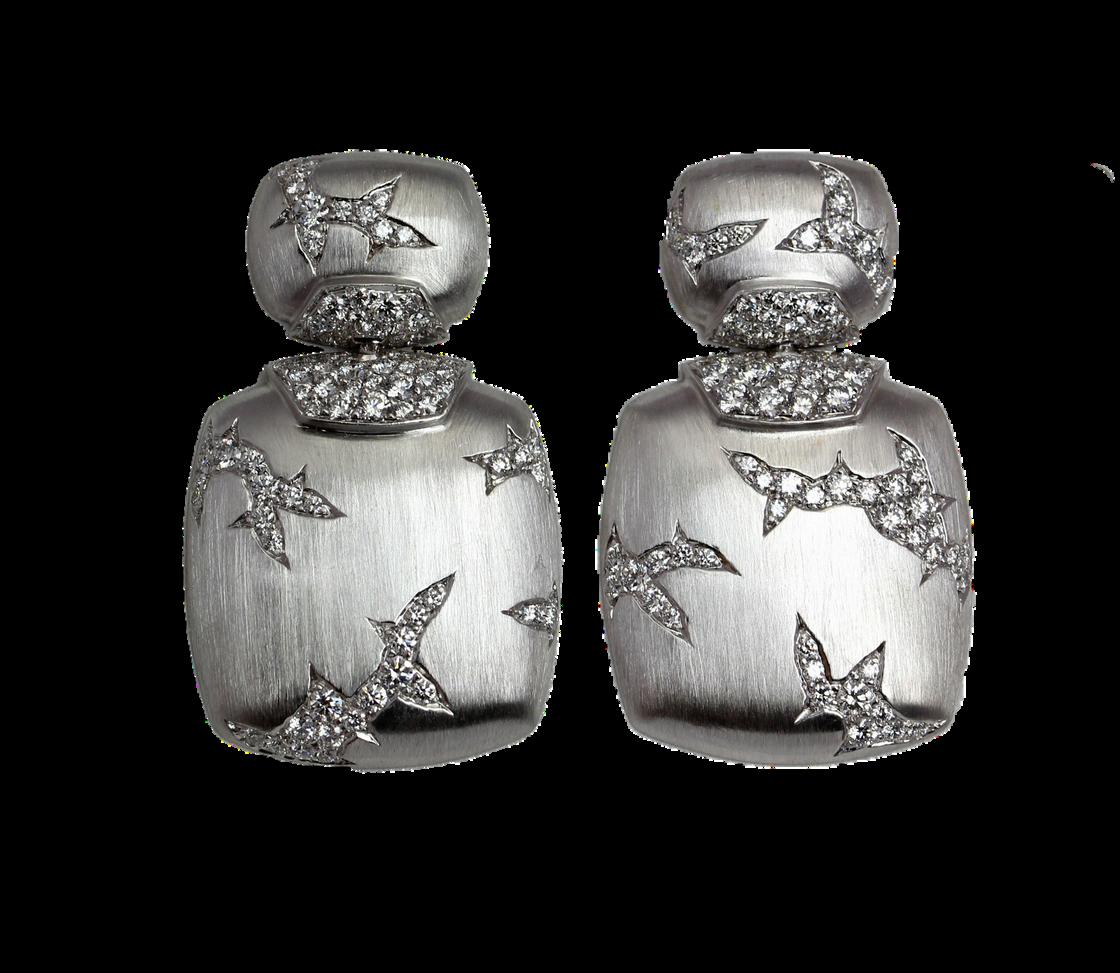 Diamonds, once believed to be shards of fallen stars, have long carried the mythology of the cosmos within them. In ancient texts, they were said to be tears of the gods indestructible, eternal, and forged in divine fire These earrings summon that celestial legacy, where each stone becomes a flash of insight, a bolt of revelation The white gold, brushed like a quiet sky before the storm, holds the tension between control and chaos.