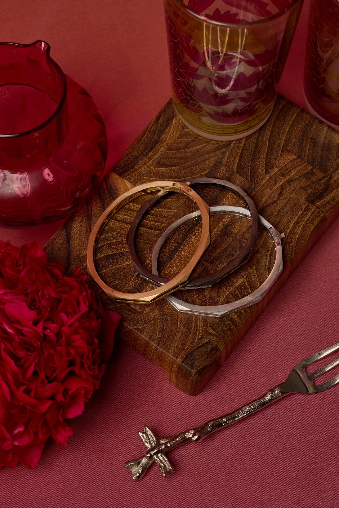 This bangle does not shout It listens It holds space It is the clarity found in a temple’s empty chamber, the hush before revelation A vessel for inner vision, it honors that rare woman who does not seek attention, but commands it through her stillness her strength encoded in quiet, exquisite symmetry