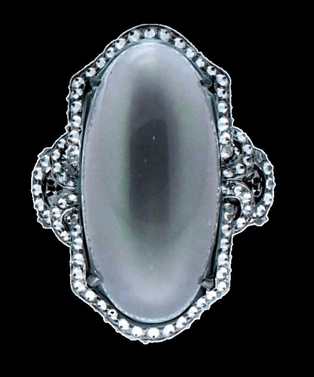 Its silvery adularescence evokes the moon’s quiet pull on tides and dreams, while in art, its glow recalls the nocturnes of Whistler or the celestial geometry of Hilma af Klint works that speak to the unseen forces shaping our inner worlds Framed by a constellation of diamonds, moonstone becomes more than a gem; it becomes an invitation to stillness, to wonder, and to the eternal rhythms of light that guide us from within