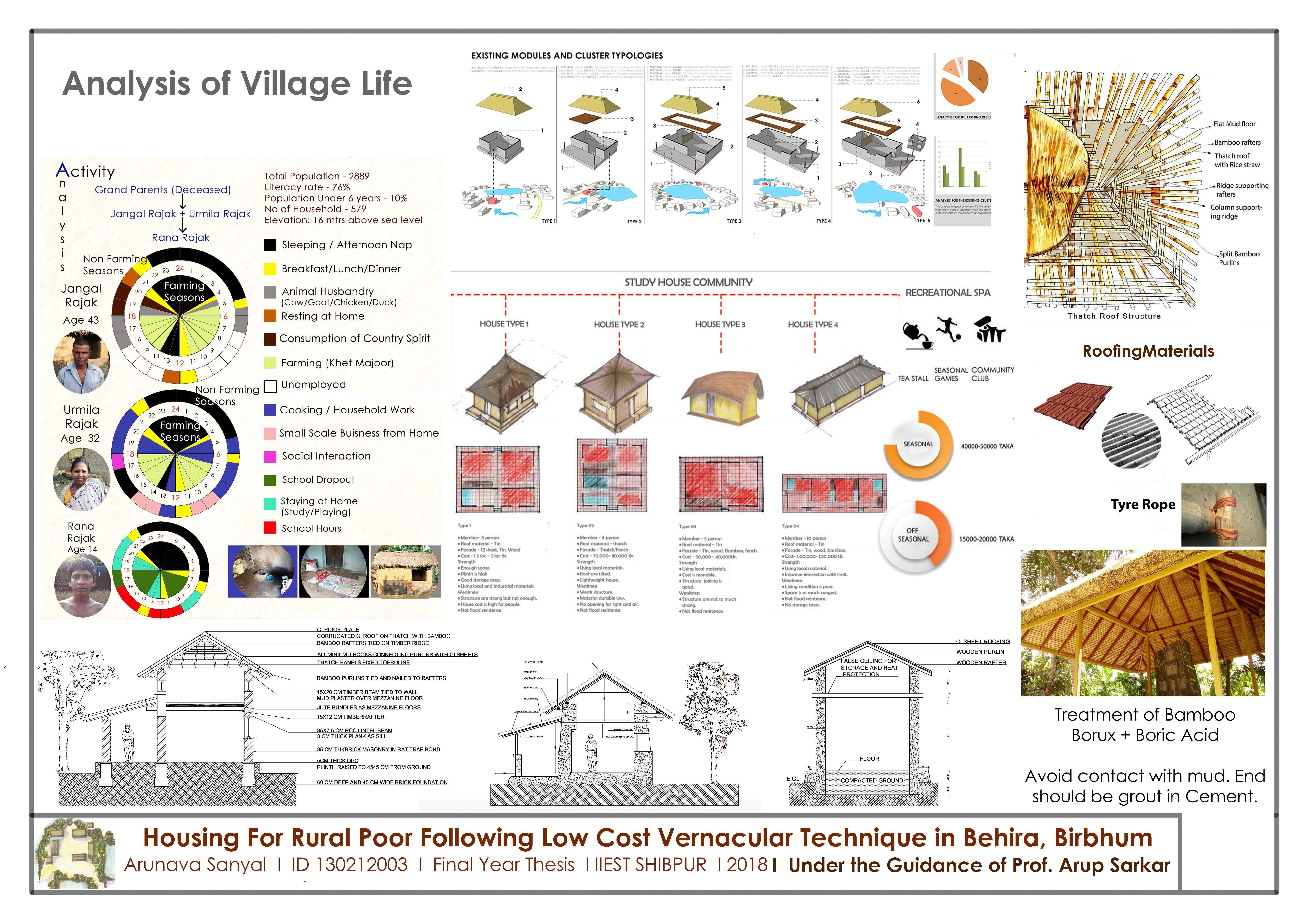 The Architectural Project Thesis entitled ‘ Housing for Rural Poor Following Low-Cost Vernacular Technique in Behira, Birbhum’ submitted by Mr. Arunava Sanyal (ID: 130212003) in 2018 in partial fulfillment of the requirements of the five-year degree of Bachelor of Architecture offered by Indian Institute of Engineering Science and Technology, Shibpur.