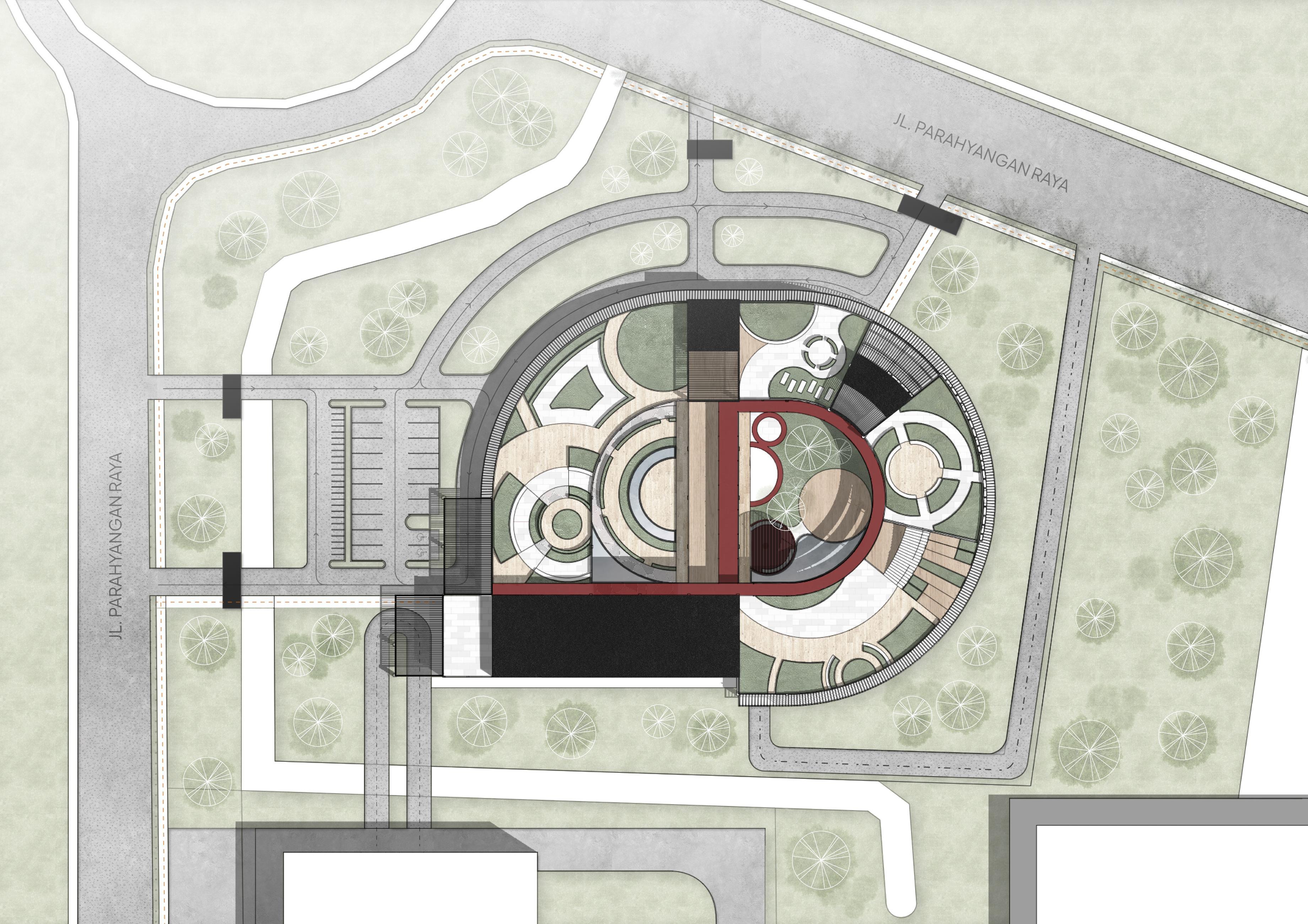 children’s landscape designed with large open space for them to let out their energy, playground area with soft ground, and gazebo as a waiting & seating area. not only that, it’s designed with trees & vibrant greens as part of the ramp’s main attraction.