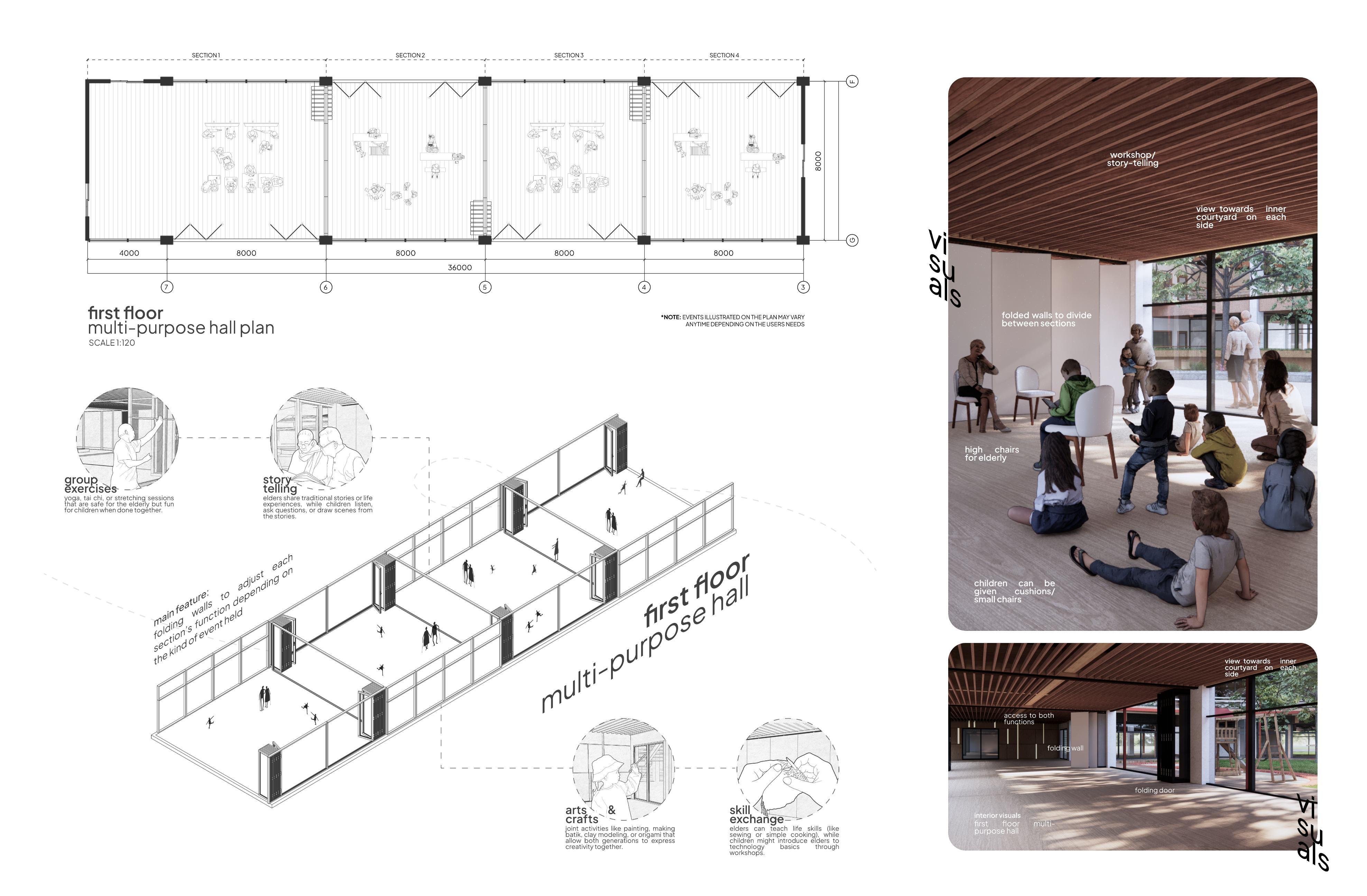 create shared spaces that naturally foster intergenerational interaction, enabling meaningful connections between children and older adults through everyday activities, mutual learning, and inclusive spatial experiences.