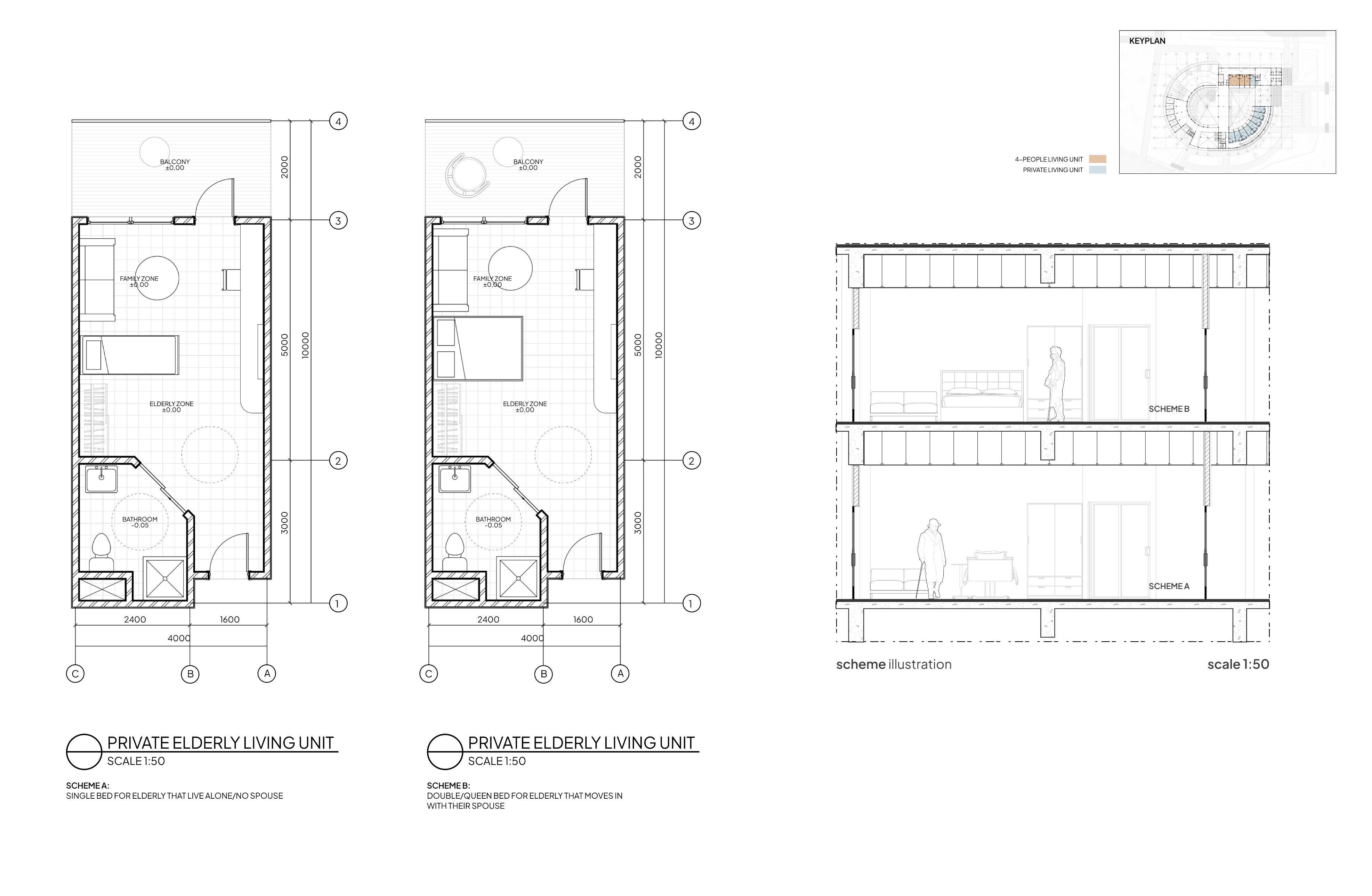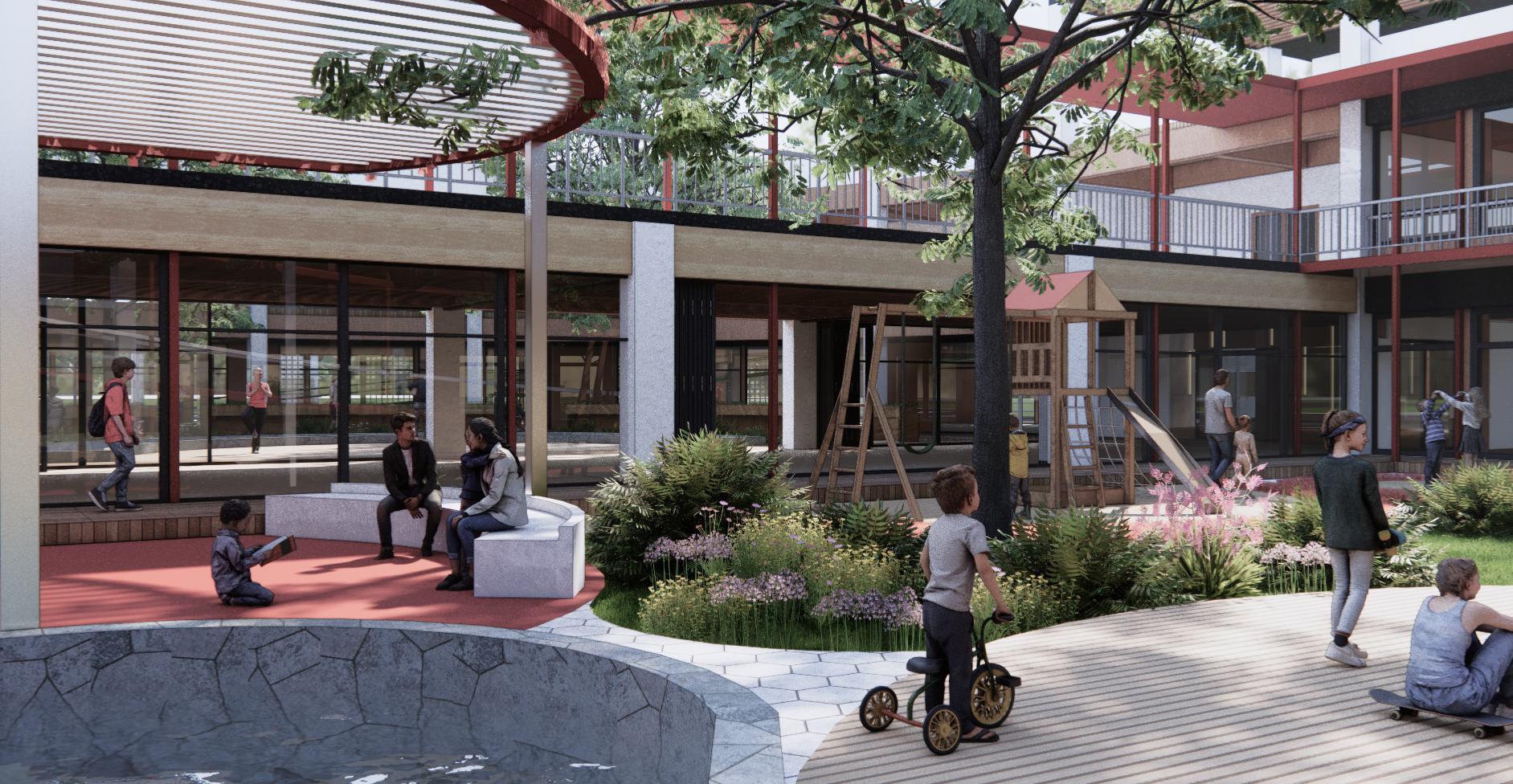 Creating adaptive and interactive spaces through the design approach of an Intergenerational Mixed-Use Facility: Elderly Housing and Children Education Center, which fosters intergenerational social interaction to enhance the physical and psychological well-being of the elderly.