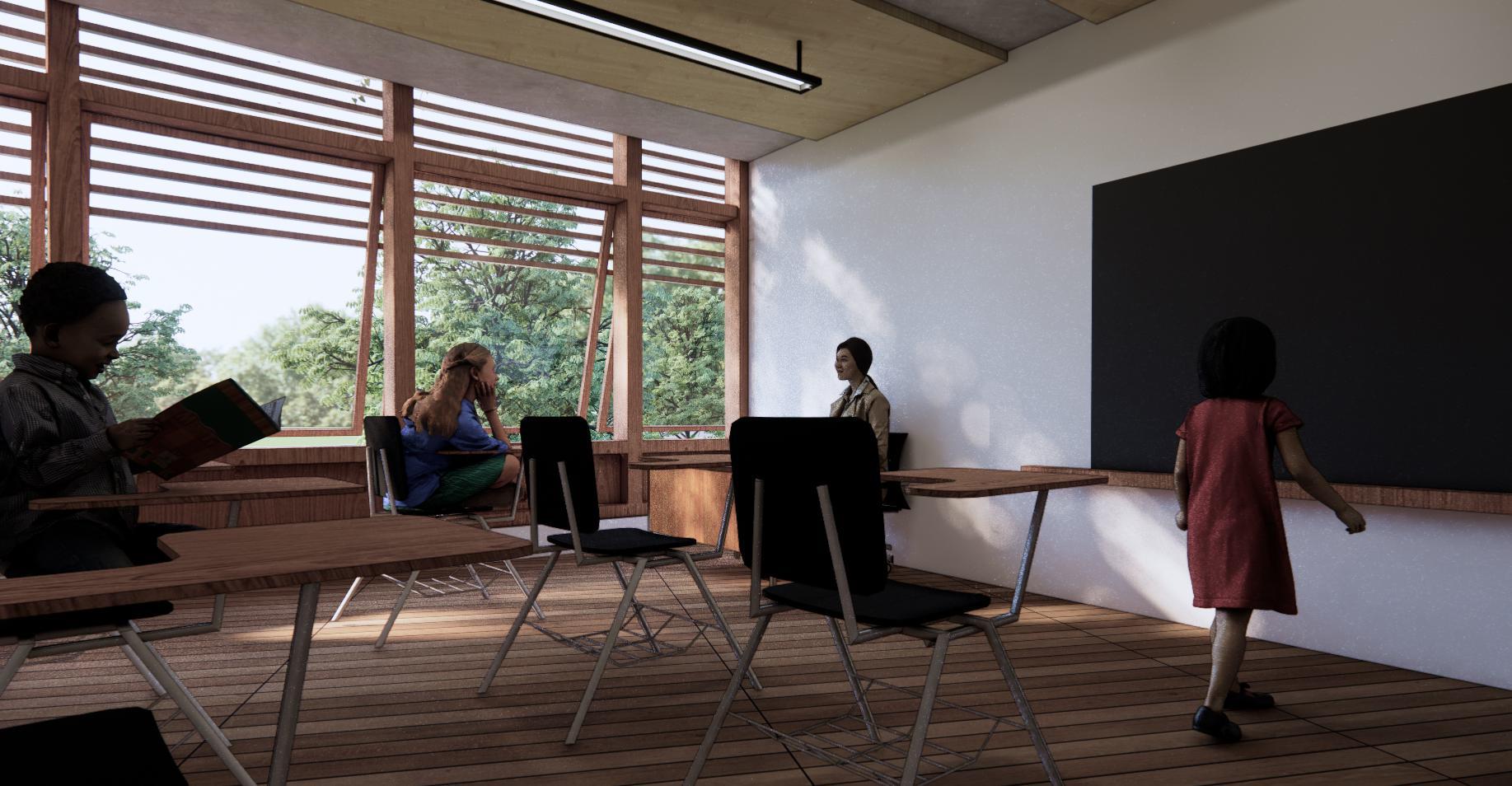 where the heart of the children education center lies, designed with openable windows for ventilation & natural lighting