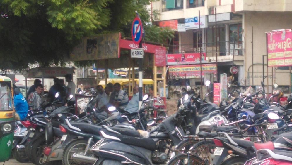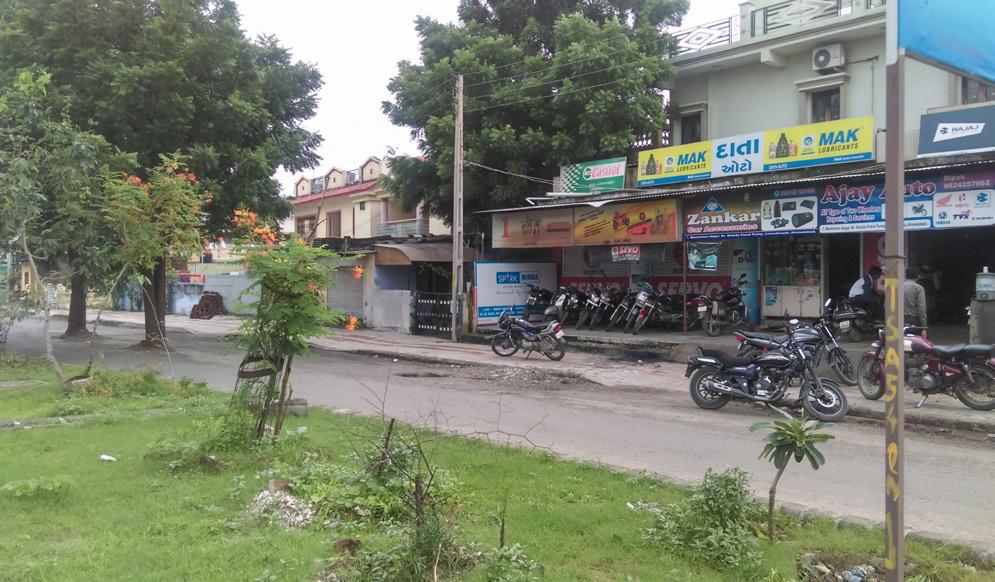 Due to the minimum setback building regulations, the edge that brings build fabric in an alignment of similar setback is shifted in all plots and thus created haphazard growth in all over SH-41. Due to the presence of such setting, the walkable spaces remain inactive and this leads to the acceptance of private vehicle for all the locals. This leads to increase in concession of vehicles on roads and lesser acceptance of the available public transit. TOD along any transit corridor is introduced to build a safe walkable environment which is meant to ease the use of public transits. Without the easy accessibility to the transit corridor, public realm and existing infrastructure for walking and cycling stays inactive. To promote walkability and for an active realm, a build-to-line settlement is needed to define clear space for the public realm. Haphazard development due to existing building regulations along SH-41. There is unmatched alignment of building blocks due to minimum setback norm.