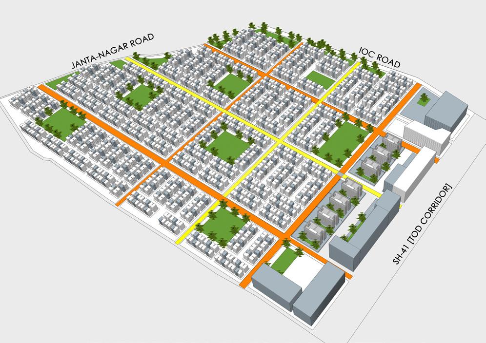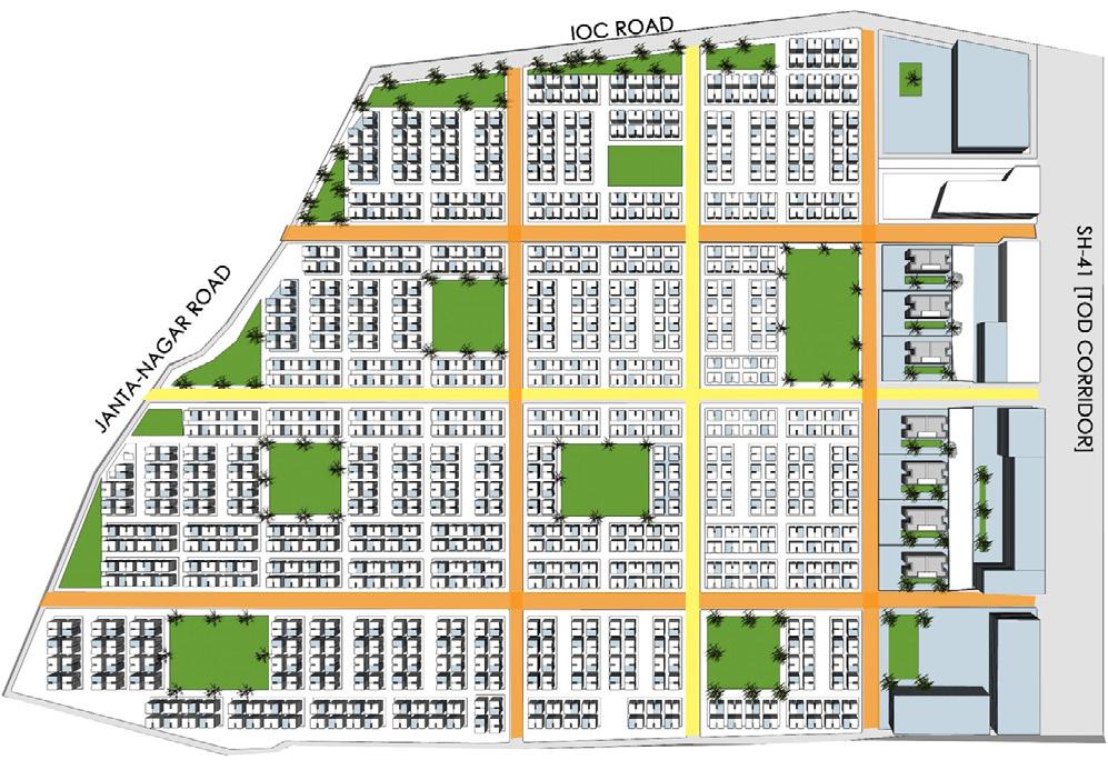 The proposed plan is having 3 major horizontal street two 15-meter road and single 12-meter road which will provide direct access to the SH-41 which is a TOD corridor, as proposal have commercial buildings along the TOD corridor