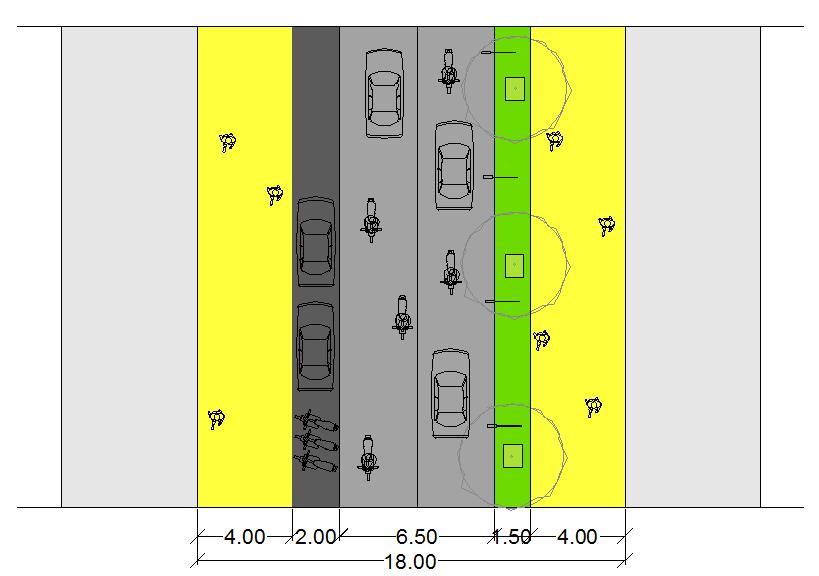 Additionally, the informal parking and land encroachment through on street parking is regulated by redefining parking norms and spaces in the zone. No parking is allowed at the front edge of the building. Since front margins are kept preserved for quality realm, rear side of the building and basement are used for parking. Side margins are kept at 3M minimum to increase the frontage of the building between 6080% to enhance the vision of the corridor. There is relaxation on off street parking requirement and 20% minimum permissible off street parking allowed