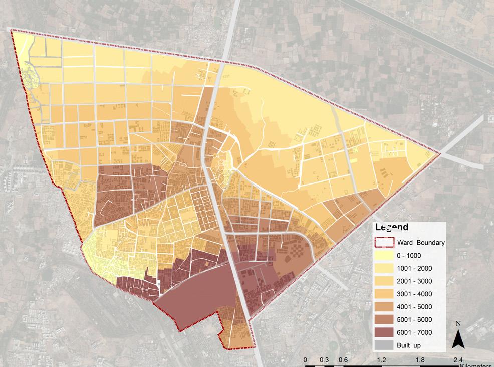 Chandkheda, a fringe area, located in the North West region of Ahmedabad city is a classic example of how fringe areas are emerging. Chandkheda falls in ward 4 of Ahmedabad city. It encompasses a population of 96,266 with an area of 16 km2 and population density of 88 persons per hectare. There are two major spines that connect Chandkheda to Ahmedabad city which are State Highway 41 and 71. Chandkheda essentially developed as a residential area due to the emergence of Oil and Natural Gas Corporation (ONGC). The major landmarks in the area include ONGC, VGEC College, Gujarat Housing Board and Chandkheda village (Gamthal). The challenges exhibited in this area include lack of public open spaces, haphazard development, absence of a systematic street grid network and poor NMT facilities. However, Chandkheda possesses potentials such as availability of low cost land, presence of a TOZ zone and good connectivity to Ahmedabad city.