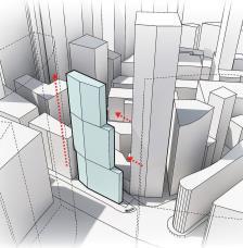 The creation of public areas, such as sky gardens, also enables the volume to rise while recovering GFA, so raising the total number of stories.
