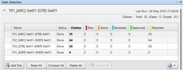 Configuring clash detective to conduct various test combination s amongst all coordinated models.