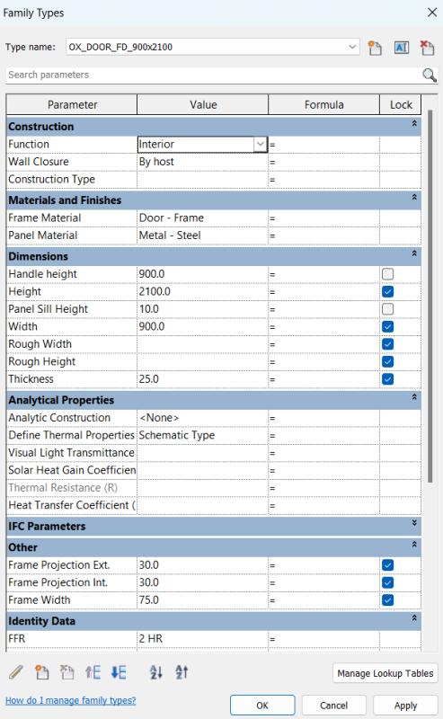Different types are allocated particular qualities to each family that is produced. When a 'door' family is built, for example, the type is described as solid door/fiber door, and the specifications differ - fire rating, structure, thicknesses, height, width, and so on. In the case of a staircase, various calculations are used to obtain the tread, breadth, rise, and so on.