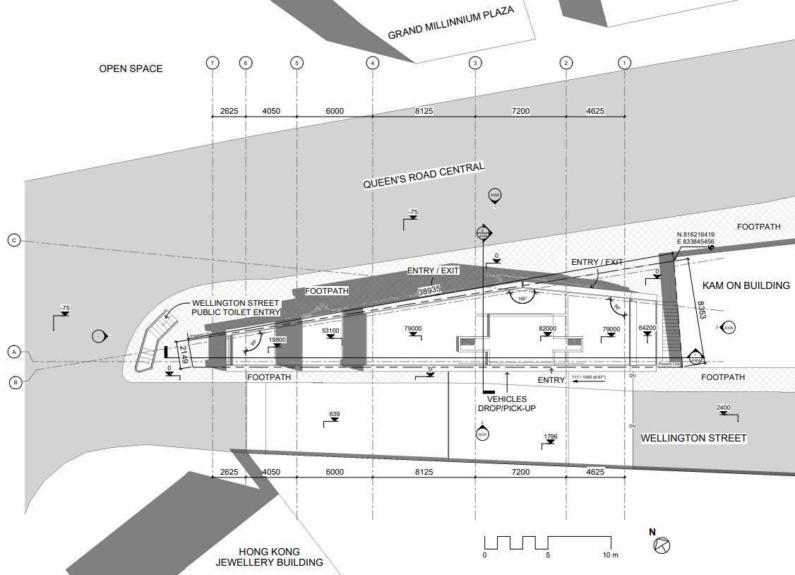 The project is located in the Central District of Hong Kong Island, at the intersection of Wellington Street and Queen's Road Central. The current structure, built in the 1970s, does not fully utilize the plot's allotted Gross Floor Area (GFA). The client intends to learn more about the possibility of developing another building volume that maximizes return on investment (ROI) while also establishing a unique landmark in this magnificent urban location. The currently available GFA is underutilized, with the current used GFA measuring 1430.7 sqm.