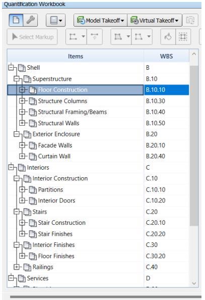 quantities for architectural and concrete elements using Navisworks, creating a shared parameter, and adding IDs to model items.