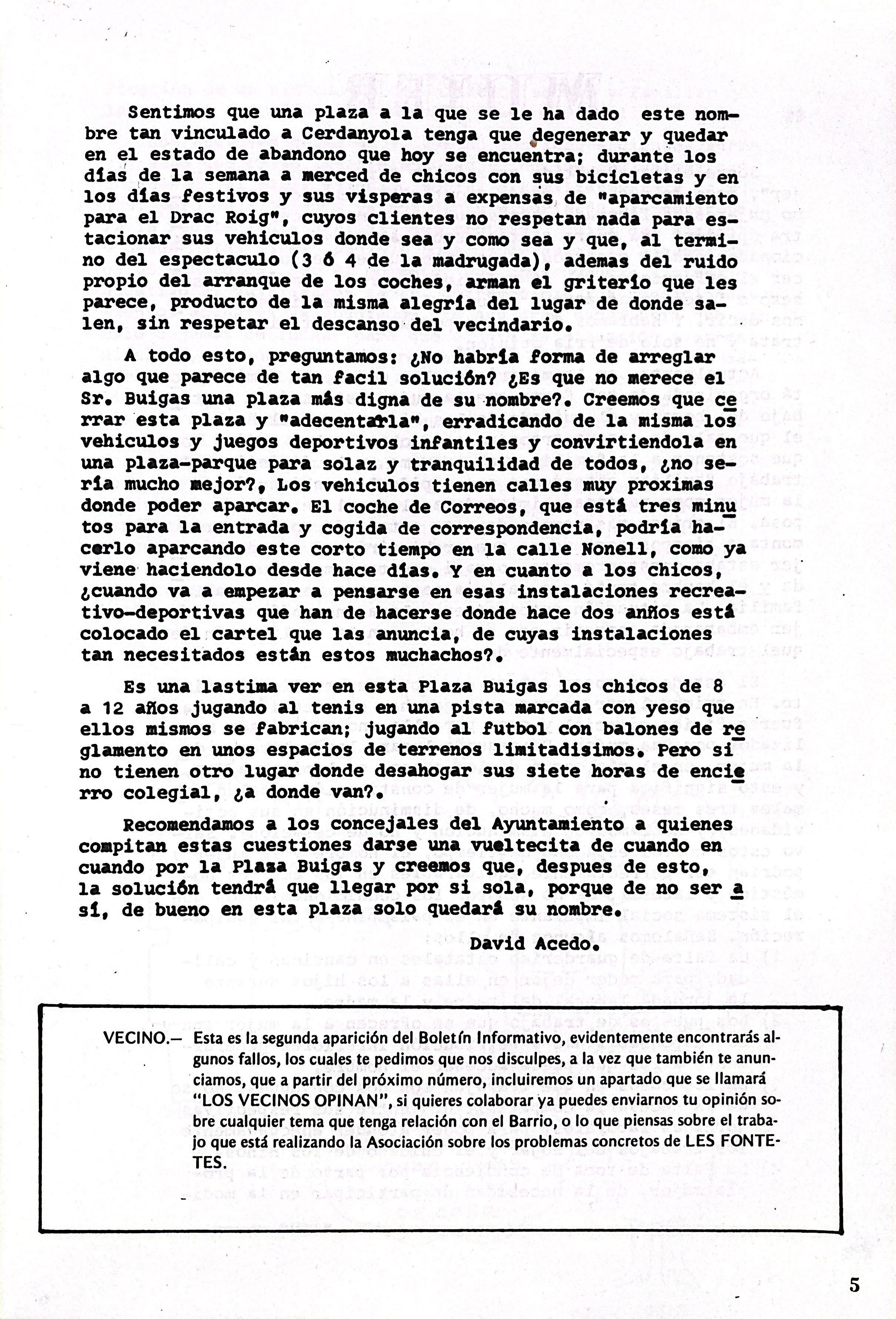 Butlleti Informatiu de l'AA.VV. Les Fontetes (Cerdanyola) - 1975 aprox.