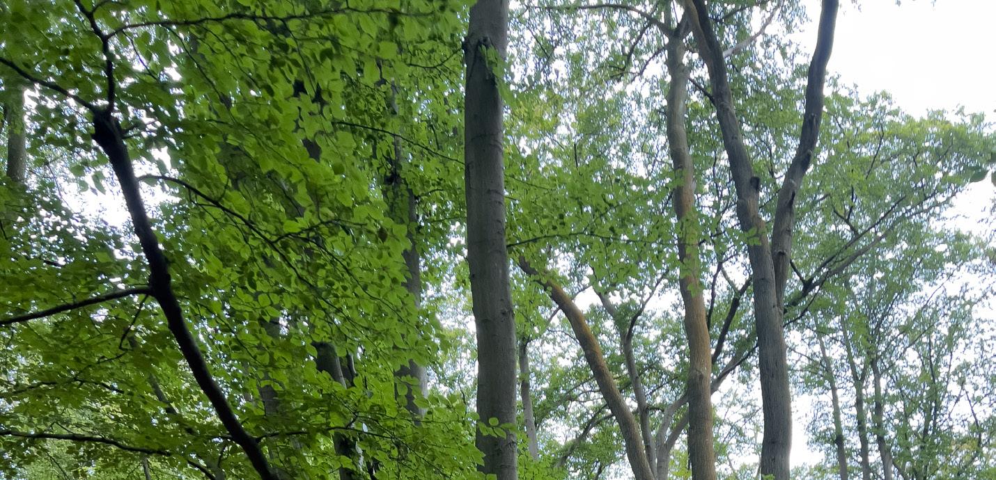 trees – following the same, almost mechanical line of scarring. Gnarled trunks with rounded bushy tops of younger growth. This was the first kind, displayed mostly by the Fagus sylvatica (European beech). The second could be described as not having much of a trunk, but rather a stool, from which a clump of slender, straight stems surface. These were in clusters – possibly driven by the age of the growths themselves (seen in Quercus robur (Pedunculate oak)). An unexpected conversation with a local forester (Liam Davis), during a subsequent visit, suggested that these scars were a monument to historic sustainable forestry practices of pollarding and coppicing. Their presence suggests that the forest has been