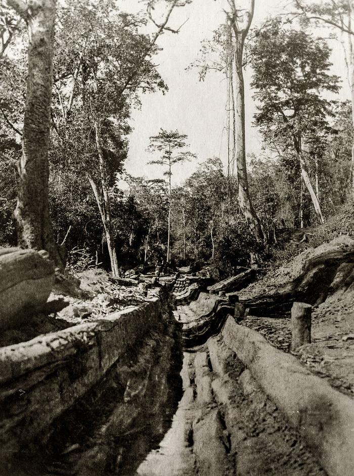 Ben Squire’s great-grandfather was a manager for the Bombay Burma Trading Corporation in the late nineteenth century. Mr P Marshall was tasked with the supervision of teak logging expeditions in the Burmese jungles. 34 Squire’s digital archive of Marshall’s photographic endeavours provides a parallel intimate understanding of settler colonial attitudes – where commercial interests materialised in the mobilisation of nonhuman figures for resource exploitation. 35 Figure 13 can be merited for its poignant encapsulation of the colonial gaze, as argued by this dissertation. The orchestration of the photography set: two labourers and the fruit of their labour – demolition of their indigenous habitats; documenting the façade of propriety and achievement. Consideration towards apertures, exposures, and visual compositions throughout the portfolio of images narrates the fruit from its systematic exploitation that was not only rationalised but also glorified. Where in England the shipbuilding industry created livelihoods for its citizens, the operations in this part of the world resulted in well-respected generational foresters becoming servants to British corporations and their abusive leadership. 36 The existence of a portfolio of images (Figure 14) – as opposed to a one-off memento – affirms the existence of a narcissistic power complex within colonial terraforming.