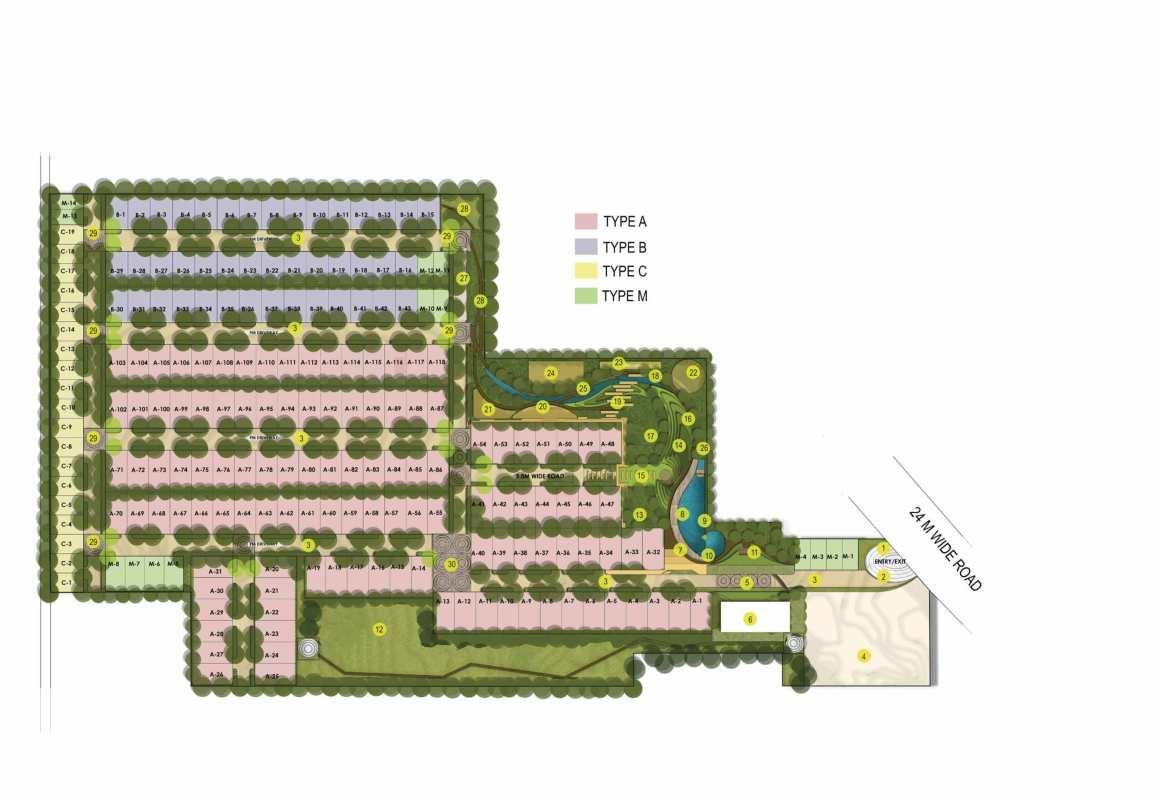 01. ENTRY/EXIT 02. ENTRANCE PRECINCT 03. DRIVEWAY 04. COMMERCIAL BLOCK 05. FOREST PLAZA 06. CLUB 07. PATHWAY 08. DECK 09. SWIMMING POOL 10. TODDLER POOL 11. CHANGING ROOM 12. SPORTS FACILITIES 13. BANQUET LAWN 14. AMPHITHEATRE 15. STEPPING STONE 16. MOUND 17. YOGA MEDITATION LAWN 18. WATER BODY 19. FOOT REFLEXOLOGY 20. KIDS PLAY AREA