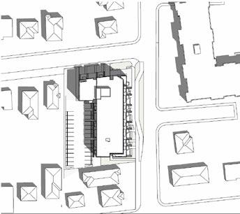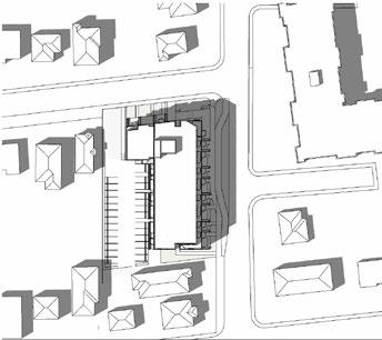 The design of the building mass has been carefully considered to minimize its shadow impacts on adjacent properties and the surrounding public realm.