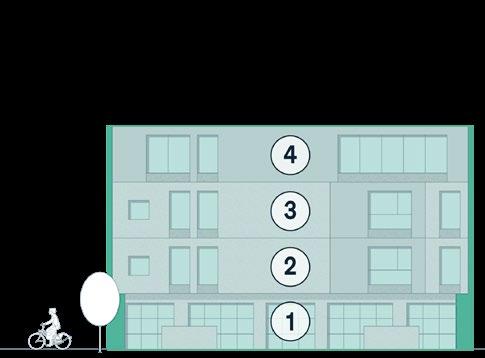 • Bicycle parking facility accommodating cargo bikes, charging for e-bikes and a maintenance station