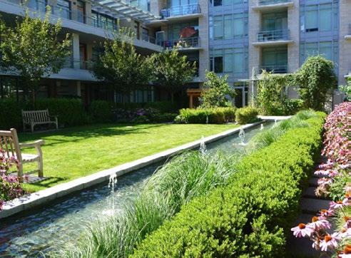 shrubs and private patios creates a soft transition between public and private realms—offering privacy for residents, visual interest through the seasons and improved pedestrian safety through passive surveillance.