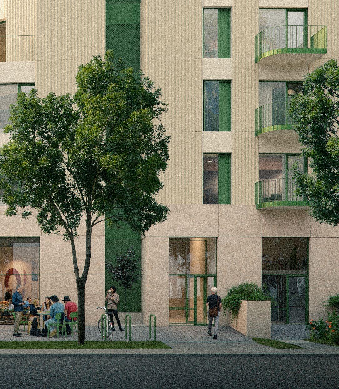 As part of this development we are seizing the opportunity to replace the existing commercial unit with a thoughtfully designed public realm that contributes meaningfully to the neighbourhood. At the corner of the site, the proposal includes a smallformat retail space—under 1,000