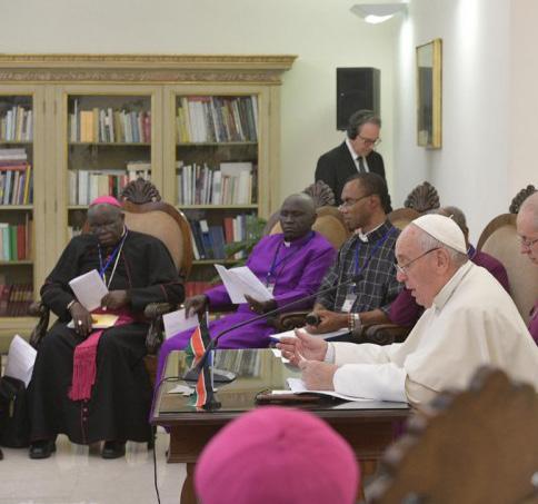 El carácter ecuménico de la visita a Sudán del Sur se manifestó en particular en el momento de oración celebrado junto con los hermanos anglicanos y con los de la Iglesia de Escocia. Juntos escuchamos la Palabra de Dios, juntos le dirigimos oraciones de alabanza, de súplica y de intercesión. En una realidad fuertemente conflictual como la de Sudán del Sur este signo es fundamental, y no es descontado, porque lamentablemente está quien abusa del nombre de Dios para justificar violencias y abusos.