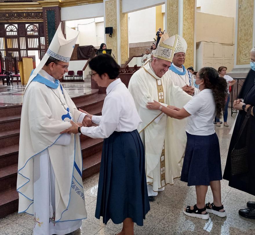 concelebrada por el cardenal Rosa Chávez, Monseñor Elías Rauda, obispo encargado de la vida consagrada en la Conferencia Episcopal de El Salvador, y varios sacerdotes religiosos, el Señor Nuncio saludó uno a uno a todos los religiosos y religiosas, incluyendo a los y las jóvenes que están en formación.