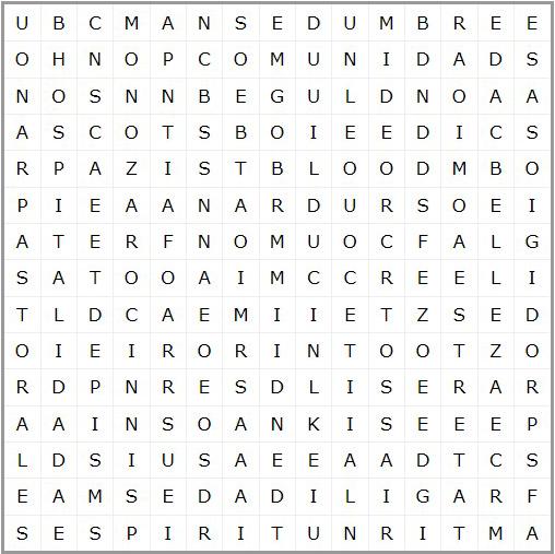 Encuentra estas palabras • Espíritu • Misericordia • Constructores • Hospitalidad • Belleza • Ofrendas • Prodigiosas • Fragilidades • Testimonio • Líbano • Comunidad • Pastorales • Familia • Mansedumbre • Corazón