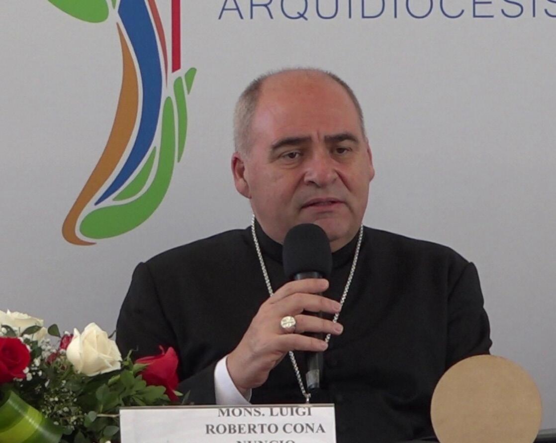 En primer lugar, quiero agradecer a Su Excelencia el señor Arzobispo, a Su Eminencia el señor Cardenal y también al Padre Edwin por la invitación. Como ya ha mencionado el señor Arzobispo, hace una semana que estoy aquí y ha sido una semana muy rica de compromisos y de experiencias. Pero, resumiendo en una palabra esta primera semana en El Salvador, pienso que el término correcto sería “cariño”. Estoy sinceramente agradecido, en primer lugar, con el Santo Padre, que quiso enviarme aquí, y además con todos ustedes, por el cariño que han tenido hacia mí. ¡Muchas gracias!