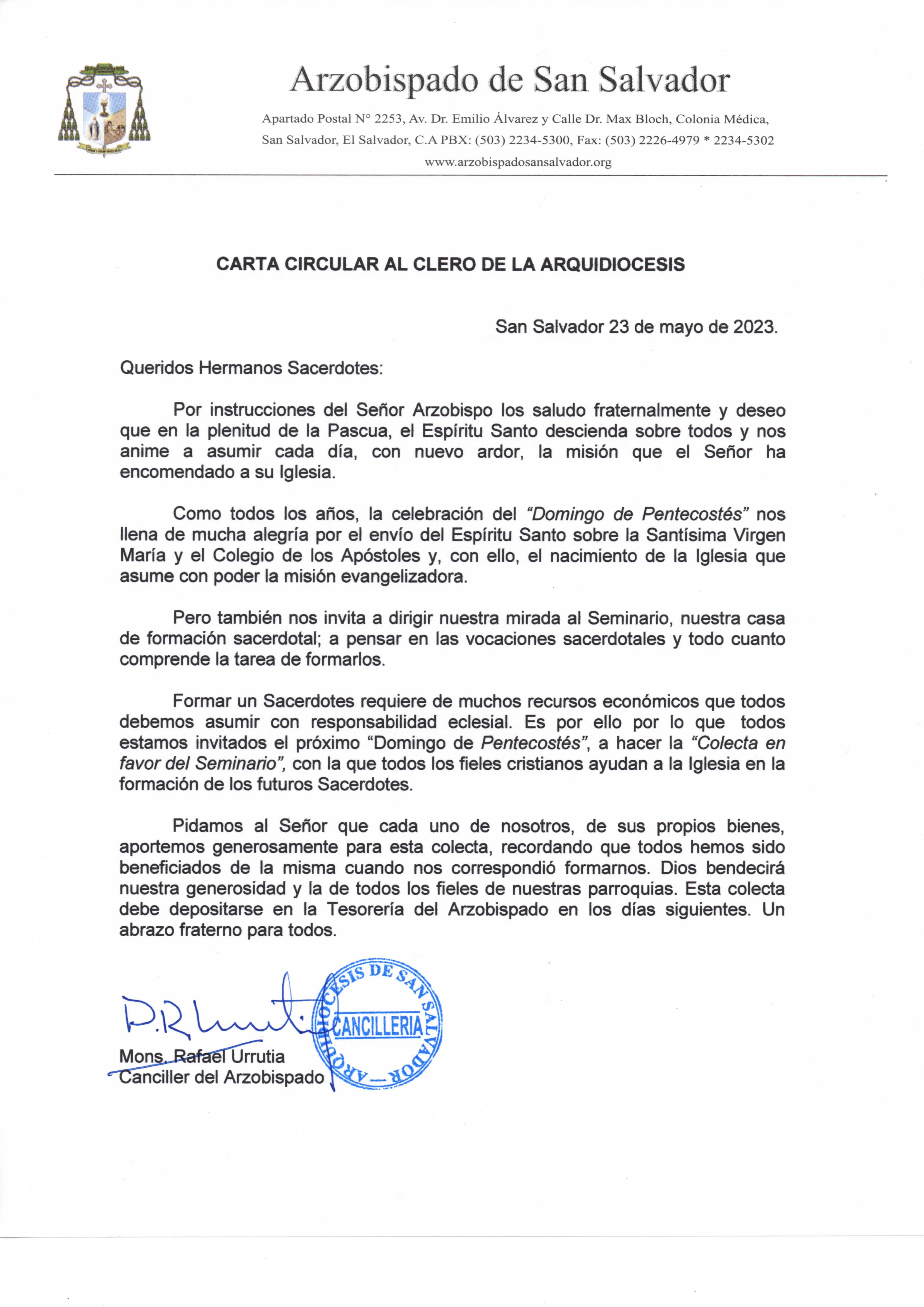 Que esta fiesta al concluir el tiempo de pascua nos ayude a nosotros como pueblo de Dios que peregrinamos en El Salvador a ser un pueblo unido en el amor de Cristo y llenos de la paz derramada por Espíritu Santo en nuestros corazones.