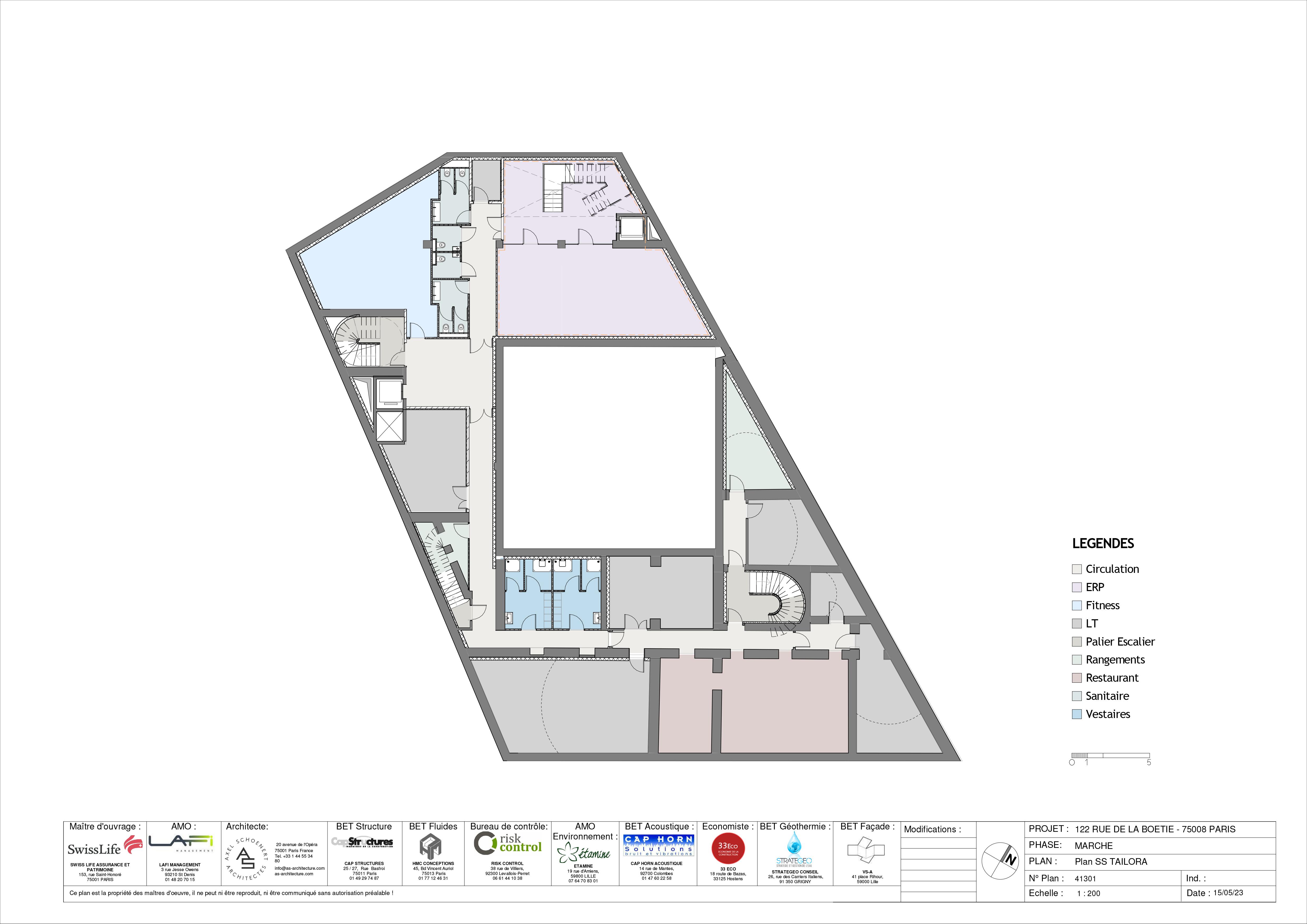 Bureau Circulation Palier Escalier Sanitaire N Modifications : PHASE: Echelle : Date : PROJET : N° Plan : Ind. : utorisation préalable ! PLAN : Bureau de contrôle: Structure AMO Environnement : STRUCTURES 27,RueBasfroi 75011 Paris 49 29 74 87 RISK CONTROL 38 rue de Villiers, 92300 Levallois-Perret 06 61 44 10 38 BET Fluides HMC CONCEPTIONS 45, Bd Vincent Auriol 75013 Paris 01 77 12 46 31 ETAMINE 19 rue d'Amiens, 59800 LILLE 07 64 70 83 01 BET Acoustique : CAP HORN ACOUSTIQUE 14 rue de Mantes, 92700 Colombes 01 47 60 22 58 Economiste : 33 ECO 18 route de Bazas, 33125 Hostens BET Géothermie : STRATEGEO CONSEIL 26, rue des Carriers Italiens, 91 350 GRIGNY BET Façade : VS-A 41place Rihour, 59000 Lille 1 : 200 41303 Space planning R+1 TAILORA 122 RUE DE LA BOETIE -75008 PARIS MARCHE 10/05/23