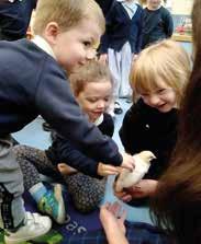 We enjoyed a visit from one of the children’s parents who was kind enough to bring three baby chicks to Nursery. The children delighted in stroking, holding, looking closely at their beautiful, fluffy friends.