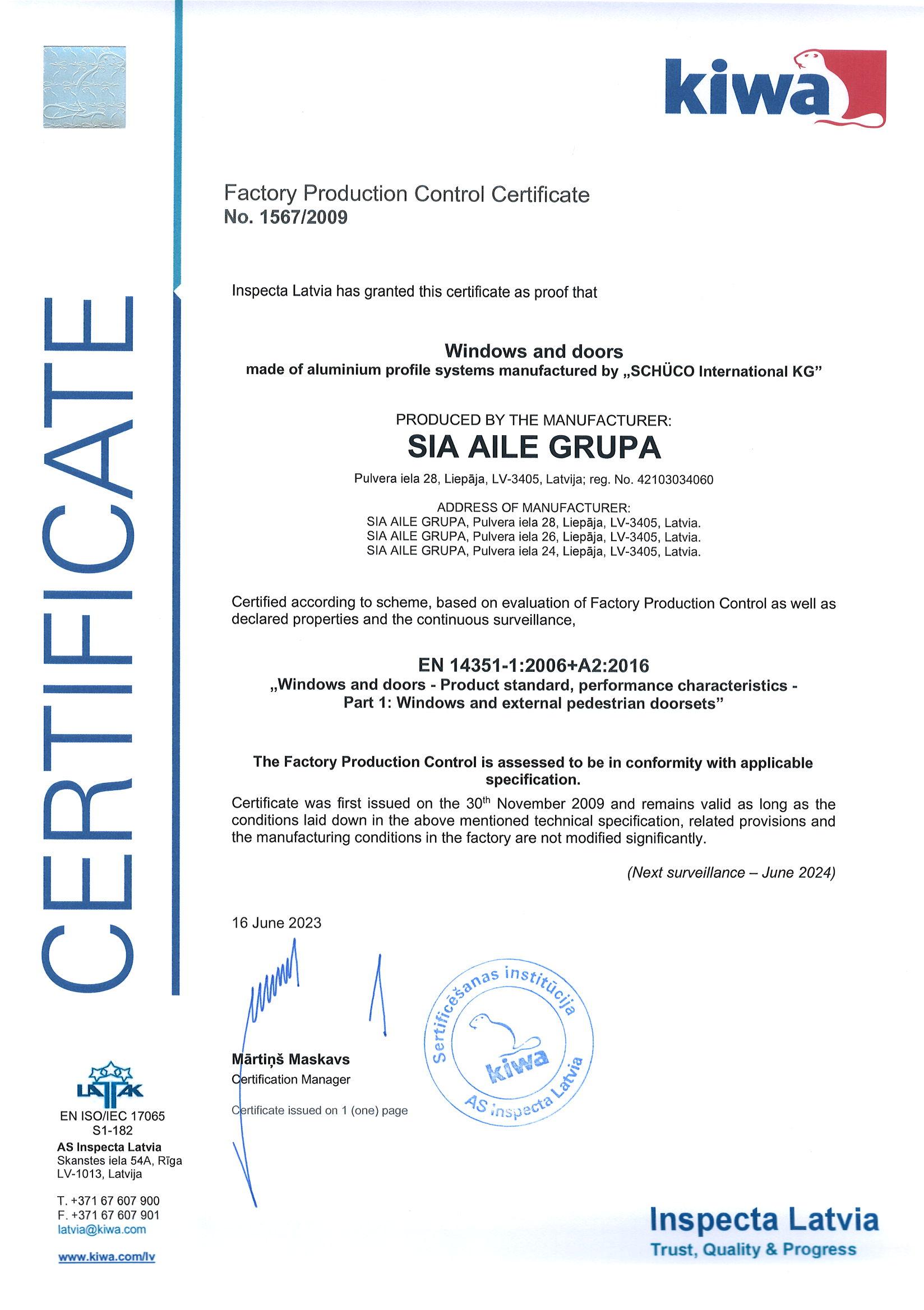 Inspecta No. 1567/2009 (Schuco doors and windows)