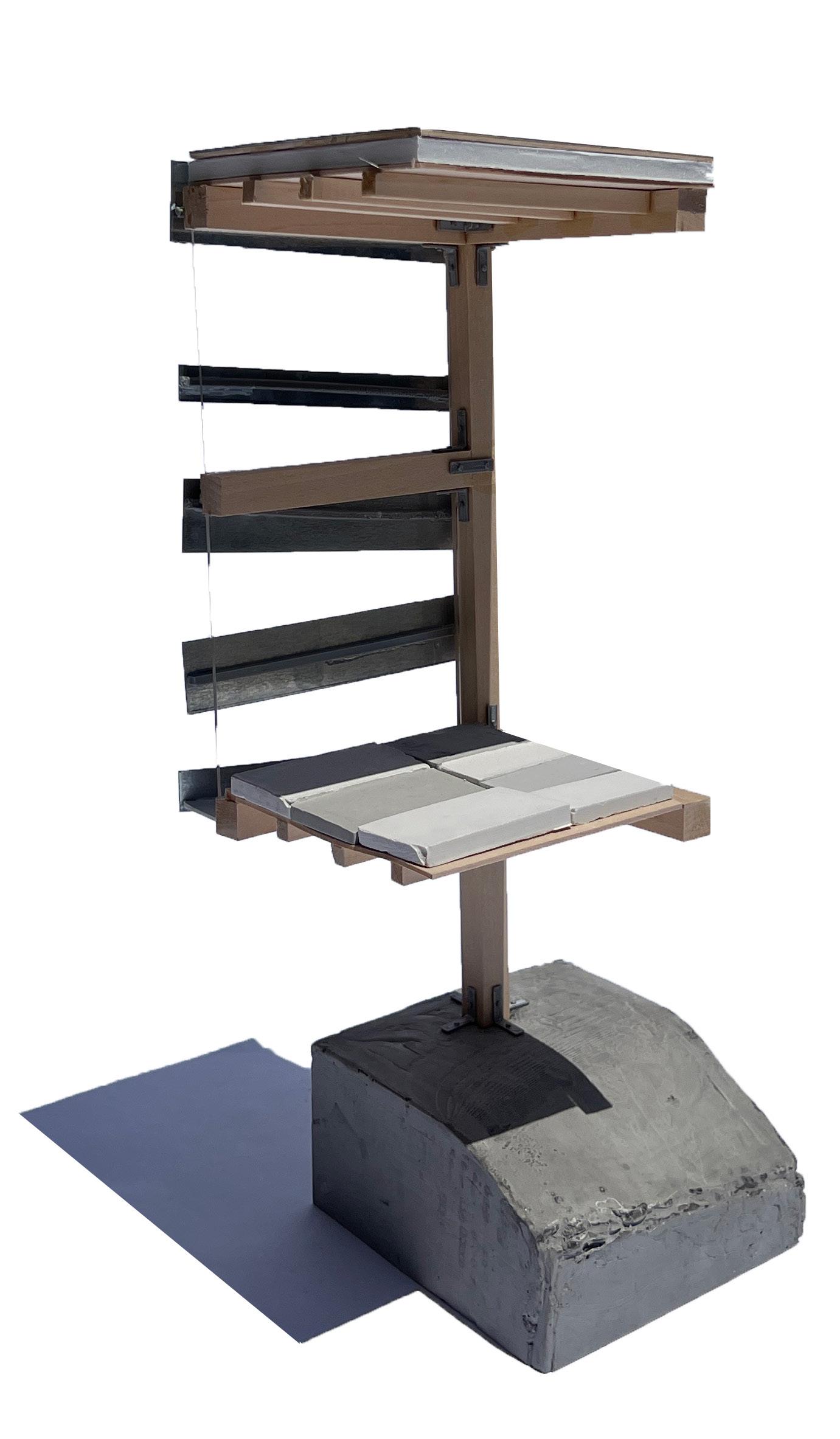 This large-scale model was developed for a confidential client and designed for museum display. Constructed from plywood, bendable wood, glass, aluminum, and corian, the conceptual model consists of four individually built modules connected by an aluminum rod and anchored to a steel base, reaching nearly 12 feet in height.