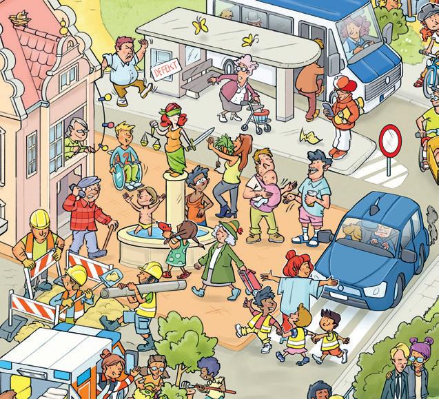 Heute steht die Figur am Marktplatz, ziemlich in der Mitte des Wimmelbildes. Jeder Mensch, der hier abgebildet ist, ist anders.