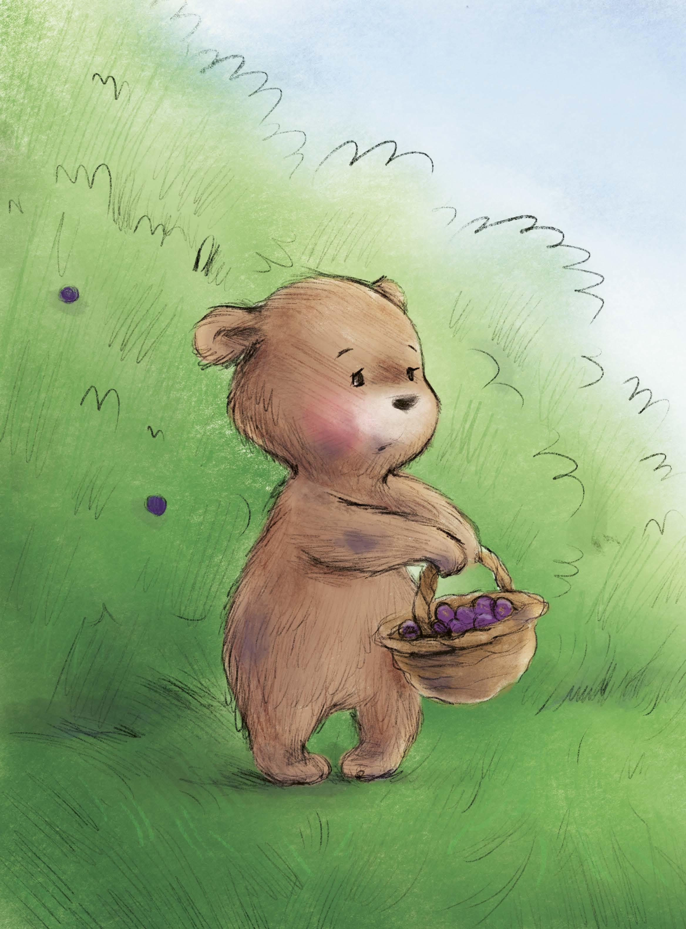„Viel Spaß, kleiner Bär!“, rief Mama Bär . Der kleine Bär lief los, um Blaubeeren zu pflücken . Seine Mama wollte damit leckere