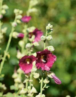 Diese typische Bauerngartenpflanze wĂ€chst kerzengrade und trĂ€gt auffallende groĂe BlĂŒten. Man sieht sie in vielen Farben: weiĂ, gelb, rot, rosa, violett und schwarzrot. AuĂerdem gibt es auch Sorten mit gefĂŒllten BlĂŒten, aber die einfachen halten lĂ€nger und werden von den Insekten bevorzugt. Manchmal stĂŒtze ich die StĂ€ngel, damit Wind oder starker Regen sie nicht umwerfen. Nach der BlĂŒte schneide ich die Pflanze zurĂŒck, damit sie im nĂ€chsten Jahr wieder blĂŒht. Man kann die Samen allerdings auch reifen lassen, dann kann sich die Stockrose versĂ€en.