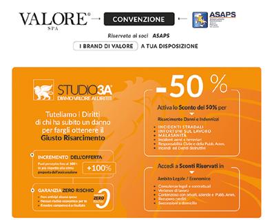 Vantaggi esclusivi per i soci Asaps Grazie alla convenzione attiva da oltre due anni, i soci Asaps hanno diritto a un sconto del 50% sul