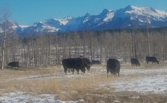 Our cow herd consists of moderate framed cattle that are maternal, easy fleshing and have extremely good udders. The cow herd has to survive on high mountain pasture, dry fall pasture and winter corn stalks and maintain their body condition all the while raising a calf.