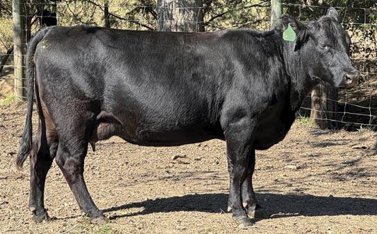 Moderate framed 4-year-old with lots of depth of rib and thickness. Perfect frame size and mature weight. Super easy to handle. Her 2023 bull calf weaned at 776. Pasture exposed to commercial black bull Jan-Mar 2024.