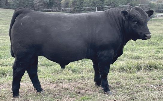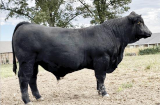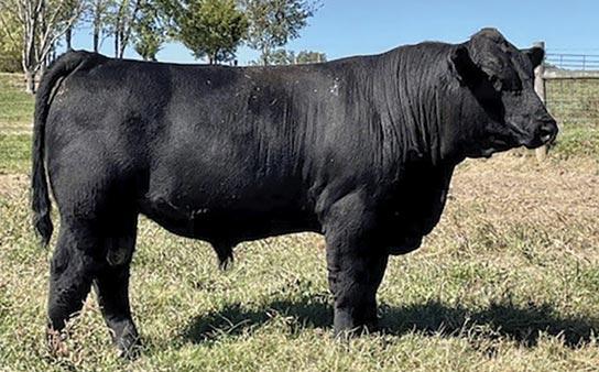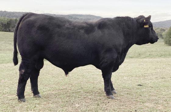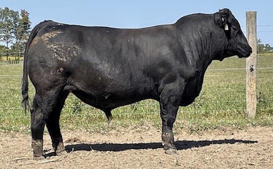 Heres and upstanding kind of Bold Ruler son by a first calf heifer that should add length, frame, and performance to his calves. He has a balanced set of EPD's and performance data starting off at 85 lbs and weaning at 715 lbs. He could work well on a mixed set of medium sized cows to add performance and remove color as he is Homo. Black.