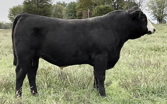 This Cowboy Cut son is long as a bus, and packed with performance! He is a Homo. Black smooth made kind of bull with a little extra frame to go with the extension. His dam is a big deep bodied female that pours the milk. He should sire some scale busting bull calves and awesome replacement females.