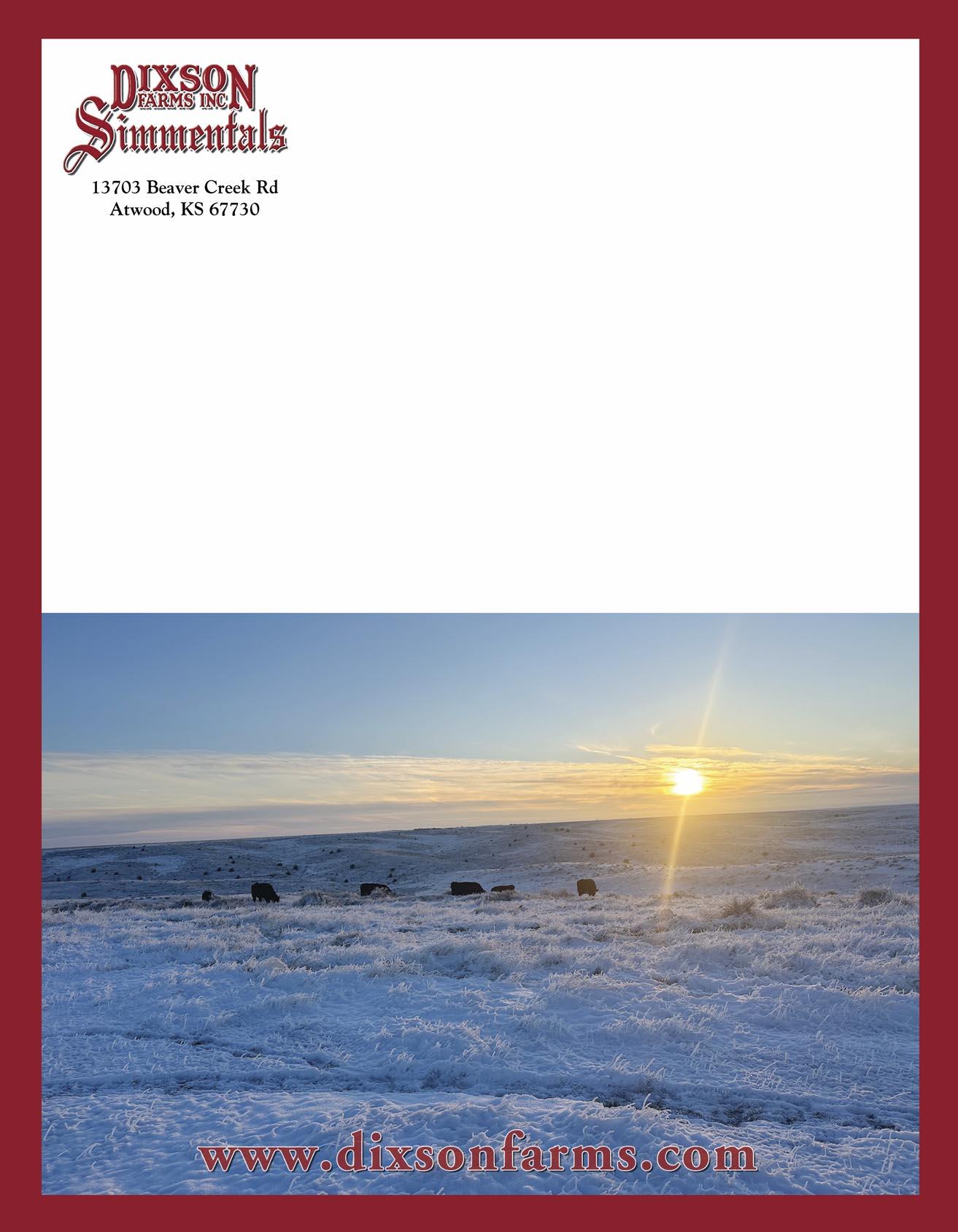 SEMEN INTEREST: The buyer will receive full possession, full salvage value and 100% semen interest on all bulls sold unless otherwise noted or announced. If a bull is collected, Dixson Farms reserves the opportunity to a one time 30 unit package for in herd use only at cost of production.