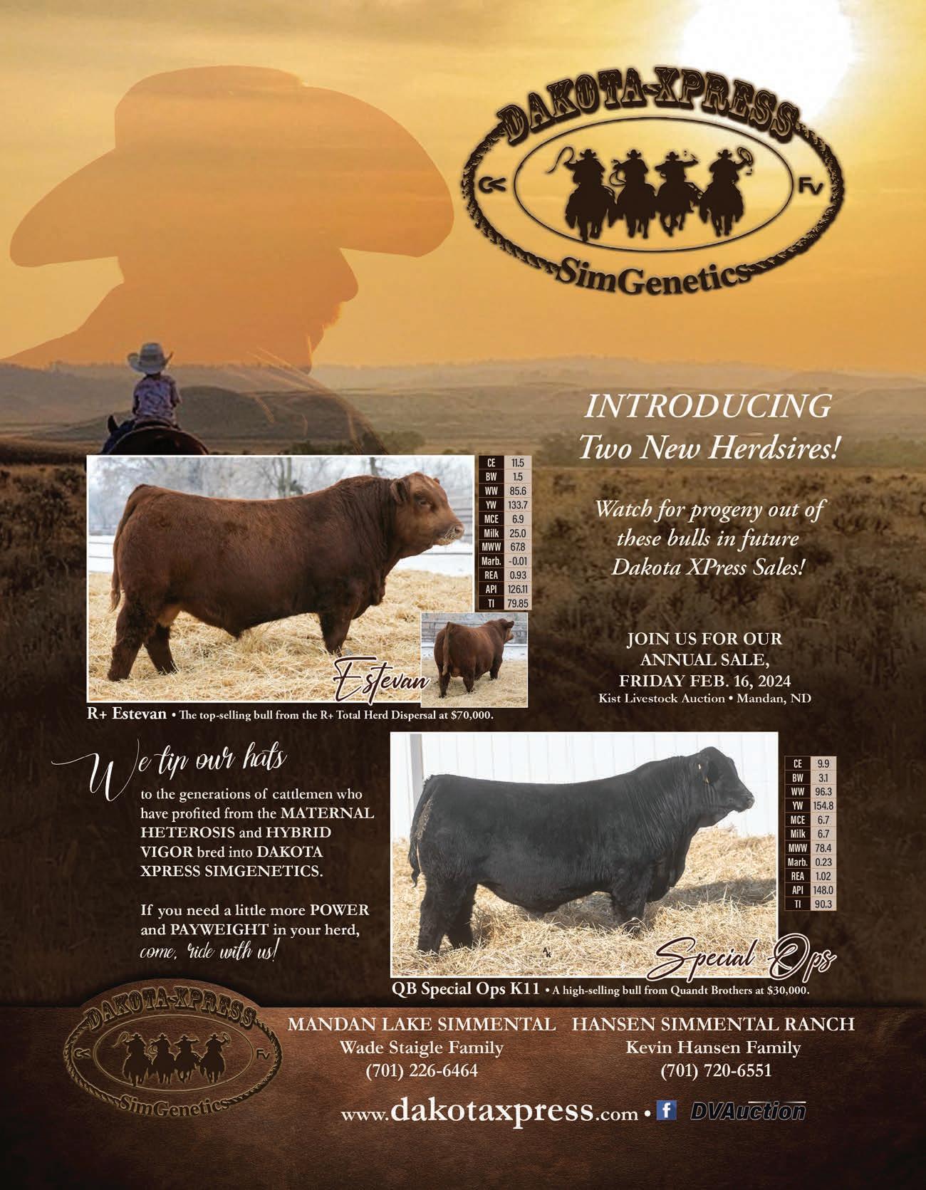 16 Dakota Xpress’ Annual Bull and Female Sale — Mandan, ND (pg. 72)