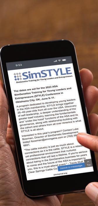 Simmental and SimGenetics are thriving throughout the country and we must do all we can to maintain that trajectory as there are markets that still can use improvement and some that have not even been touched. I invite members to research the many programs ASA offers that can fit your program and elevate you to the next level.