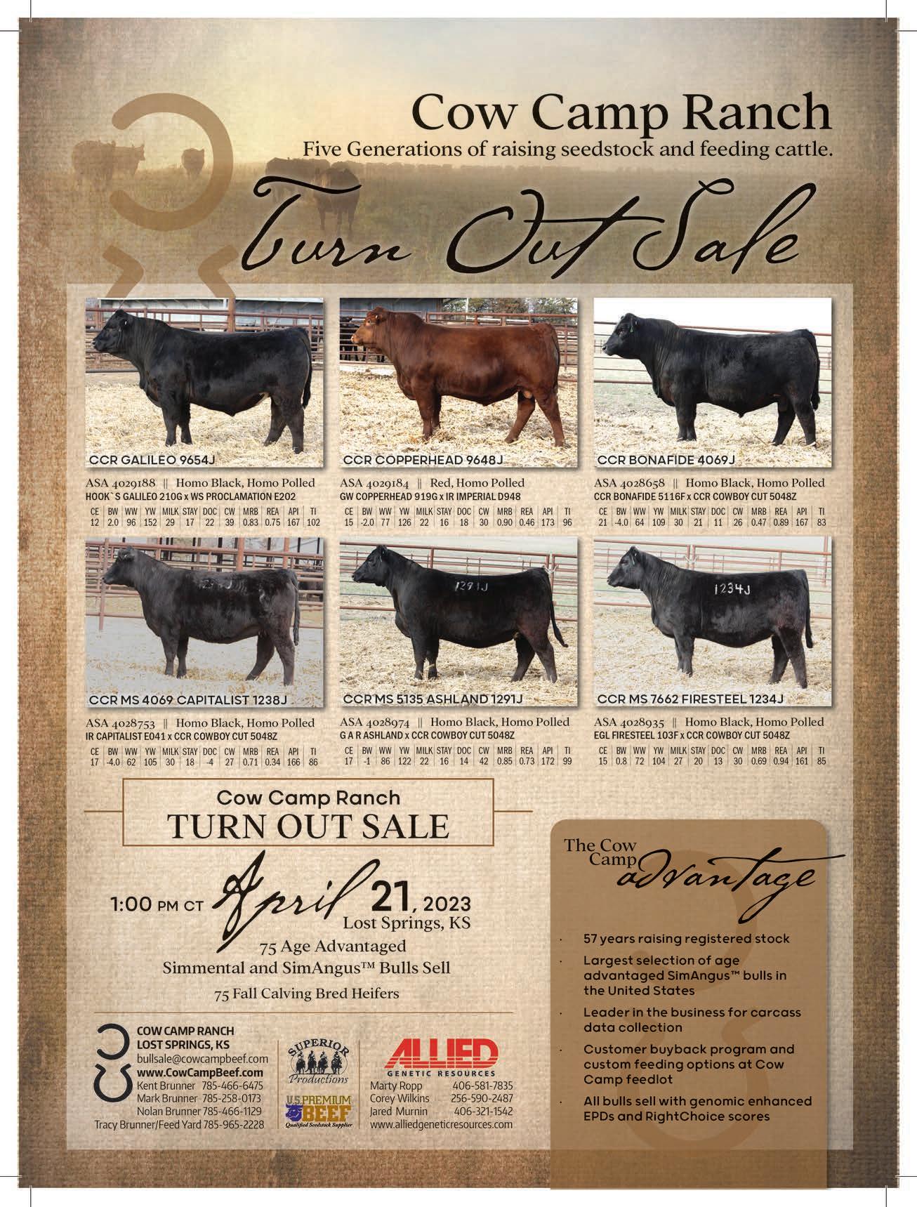 2 Cow Camp Ranch’s Annual Spring Sale — Lost Springs, KS (pg. 66)