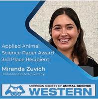 The Applied Animal Science Research Award at the WSASAS is a unique award with a sole purpose of recognizing research that directly benefits the livestock producer. Award winners demonstrate that their research could be readily applied to production systems, is new and innovative, and would increase the likelihood of profitable returns from livestock-based ventures. Applicants were asked to submit an abstract and supporting video on their research, which were evaluated by a committee consisting of leading industry and academic agricultural consultants, and chaired by the WSASAS Industry Representative Officer.